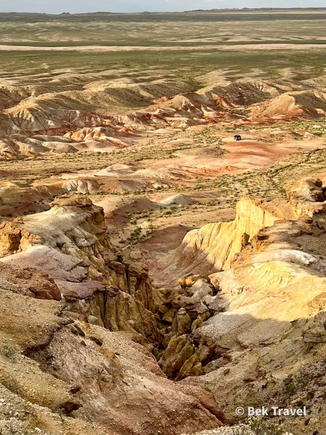 Drive to Bayan-Zag, known as the “Flaming Cliffs,”famous for dinosaur fossils and Saxaul forests.